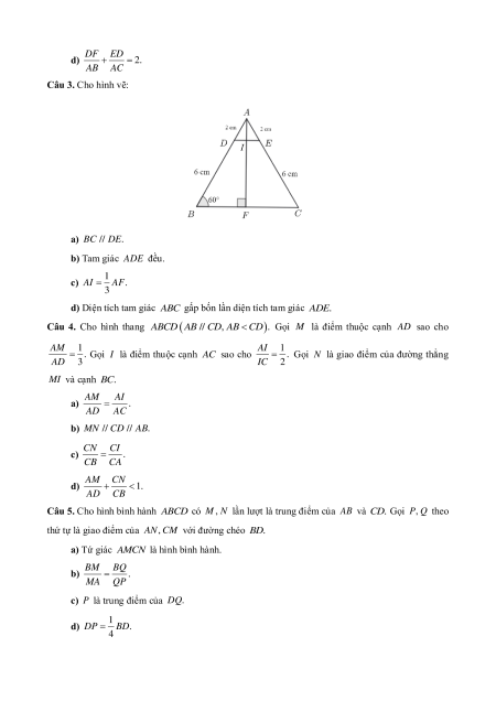 b) MN // CD // A . B CN CI c) . CB CA AM CN d) 1. AD CB