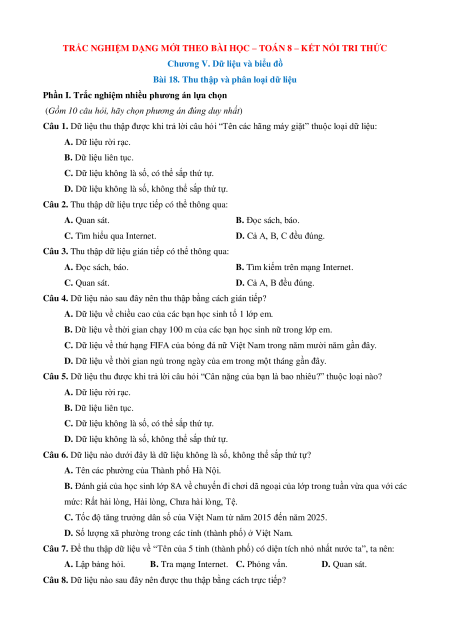 Câu 2. Thu thập dữ liệu trực tiếp có thể thông qua: A. Quan sát. B. Đọc sách, báo.