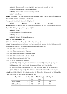 Câu 4. Bạn Hà muốn khảo sát về ý kiến đánh giá của các bạn học sinh lớp 8 về chất lượng phục vụ