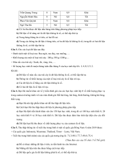 Câu 5. Thu thập thông tin về tuổi thọ trung bình ở một số quốc gia Đông Nam Á năm 2019 được: