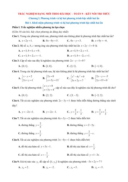 TRẮC NGHIỆM DẠNG MỚI THEO BÀI HỌC – TOÁN 9 – KẾT NỐI TRI THỨC