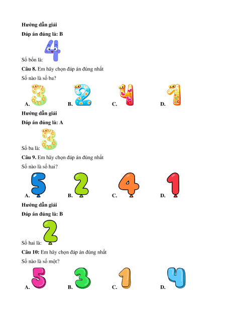 Câu 10: Em hãy chọn đáp án đúng nhất Số nào là số một? A. B. C. D. Hướng dẫn giải