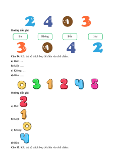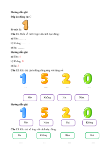 Câu 11. Điền số thích hợp với cách đọc đúng: a) Bốn: …….. b) Không: ……… c) Ba: …….. Hướng dẫn giải a) Bốn: 4 b) Không: 0 c) Ba: 3