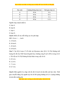 Câu 5: Trong m t cu c thi ch y, k t qu c a các b n h c sinh đ c ghi l i nhộ ộ ạ ế ả ủ ạ ọ ượ ạ ư