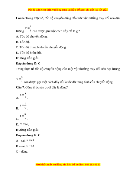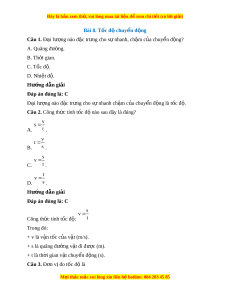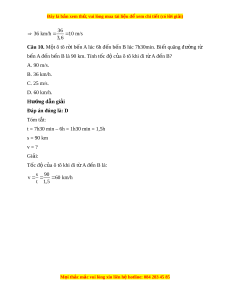 Đây là bản xem th , vu ử i lòng mua tài li u ệ đ xe ể m chi ti t (c ế ó l i ờ gi i ả ) Câu 6. Trong th c ự t , ế t c ố đ ộ chuy n ể đ ng ộ c a ủ m t ộ v t ậ thư ng ờ thay đ i ổ nên đ i ạ s v lư ng ợ t còn được g i ọ m t ộ cách đầy đ l ủ à gì? A. Tốc đ chuy ộ n ể đ ng. ộ B. Tốc đ . ộ C. Tốc đ t ộ rung bình c a ủ chuy n đ ể ng. ộ D. Tốc đ bi ộ n ế đổi. Hư ng d ớ ẫn gi i ả Đáp án đúng là: C Trong th c ự tế t c ố độ chuy n ể đ ng ộ c a ủ m t ộ v t ậ thư ng ờ thay đ i ổ nên đ i ạ lư ng ợ s