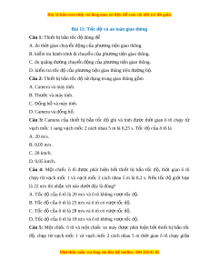 ạ mốc 2 cách nhau 5 m là 0,25 s. Tốc độ c a ô t ủ ô là A. 20 m/s. B. 0,05 m/s. C. 20 km/h. D. 0,05 km/h. Câu 4: M t ộ chi c ế ô tô đư c ợ phát hi n ệ b i ở thi t ế bị b n ắ t c ố đ , ộ th i ờ gian ô tô ch y ạ từ v ch ạ m c ố 1 và v ch ạ m c