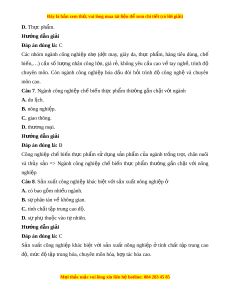 Câu 5. Ngành công nghi p nào ệ sau đây thư ng ờ g n ch ắ t ặ v i ớ nông nghi p? ệ A. Chế bi n t ế h c ph ự m ẩ . B. Đi n t ệ - ử tin h c. ọ C. Hóa ch t ấ và c khí ơ .
