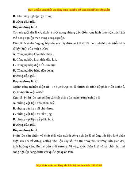 Đây là bản xem th , vu ử i lòng mua tài li u ệ đ xe ể m chi ti t (c ế ó l i ờ gi i ả ) D. Th c ph ự m ẩ . Hư ng d ớ ẫn gi i ả Đáp án đúng là: C Các nhóm ngành công nghi p ệ nhẹ (d t ệ may, giày da, th c ự ph m ẩ , hàng tiêu dùng, chế bi n,…) ế c n ầ số lư ng ợ nhân công l n, ớ giá r , ẻ không yêu c u ầ cao v ề tay ngh , ề trình độ