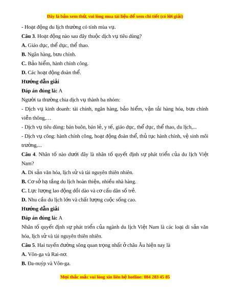 Đây là bản xem th , vu ử i lòng mua tài li u ệ đ xe ể m chi ti t (c ế ó l i ờ gi i ả ) - Ho t ạ đ ng ộ du l ch t ị hư ng ờ có tính mùa v . ụ Câu 3. Ho t ạ đ ng nào s ộ au đây thu c d ộ ch v ị t ụ iêu dùng? A. Giáo d c, ụ th d ể c, t ụ h t ể hao.