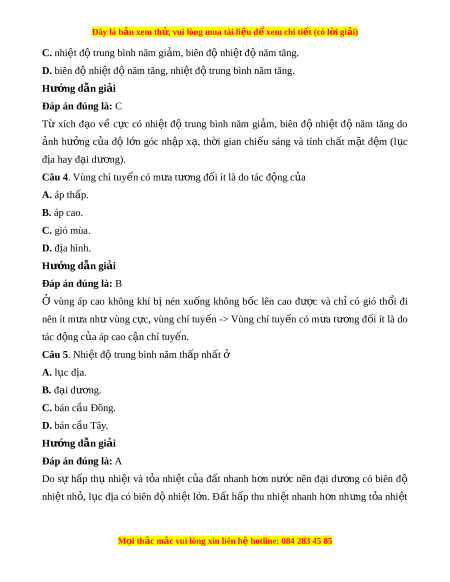 Đây là bản xem th , vu ử i lòng mua tài li u ệ đ xe ể m chi ti t (c ế ó l i ờ gi i ả ) C. nhiệt đ t ộ rung bình năm gi m ả , biên đ nhi ộ t ệ đ năm ộ tăng. D. biên độ nhi t ệ độ năm tăng, nhi t