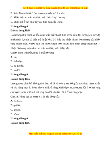 ệ độ trung bình năm tăng. Hư ng d ớ ẫn gi i ả Đáp án đúng là: C Từ xích đ o ạ về c c ự có nhi t