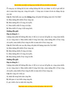 Câu 11. Phát bi u nào sau đây ể không đúng v i phân b l ng m a trên Trái Đ t?ớ ố ượ ư ấ
