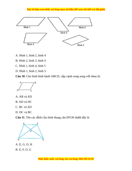 ủ hình thang cân EFGH dư i ớ đây là A. E, G, O, H B. E, F, O, G M i ọ thắc m c
