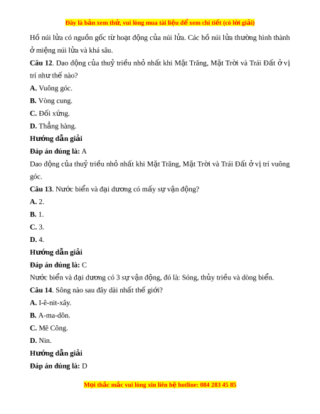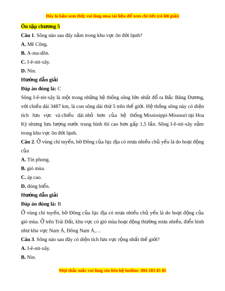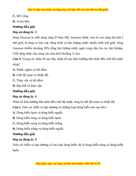 Đây là bản xem th , vu ử i lòng mua tài li u ệ đ xe ể m chi ti t (c ế ó l i ờ gi i ả ) C. Mê Công. D. A-ma-dôn. Hư ng d ớ ẫn gi i ả Đáp án đúng là: D Sông Amazon là m t ộ dòng sông ở Nam M . ỹ Amazon đư c