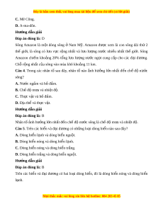Câu 1. Sông nào sau đây n m ằ trong khu v c ôn đ ự i ớ l nh? ạ A. Mê Công. B. A-ma-dôn. C. I-ê-nit-xây. D. Nin. Hư ng d ớ ẫn gi i ả Đáp án đúng là: C Sông I-ê-nit-xây là m t ộ trong nh ng ữ hệ th ng ố sông l n ớ nh t ấ đổ ra B c ắ Băng Dư ng, ơ v i ớ chi u