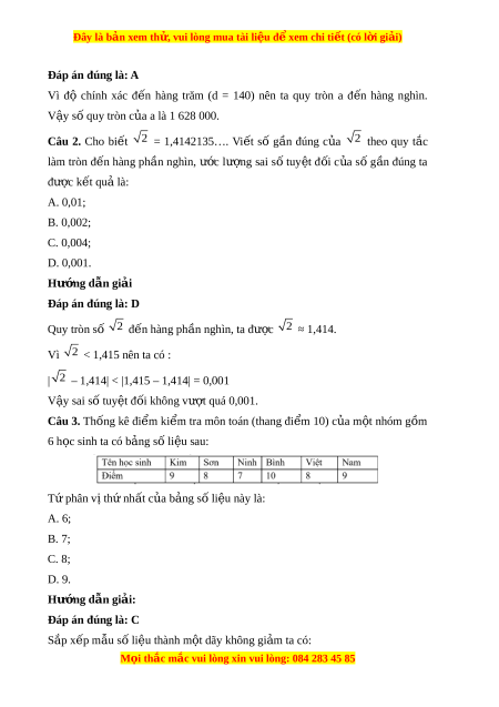 ử vui lòng mua tài li u ệ đ ể xem chi ti t ế (có l i ờ gi i) ả Đáp án đúng là: A Vì độ chính xác đ n