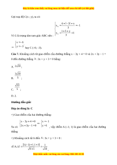 âm tam giác ABC nên : 3 x 6 . y 3 hay C (–6; –3). Câu 7. Kho ng ả cách t ừ giao đi m ể c a ủ đư ng ờ th ng