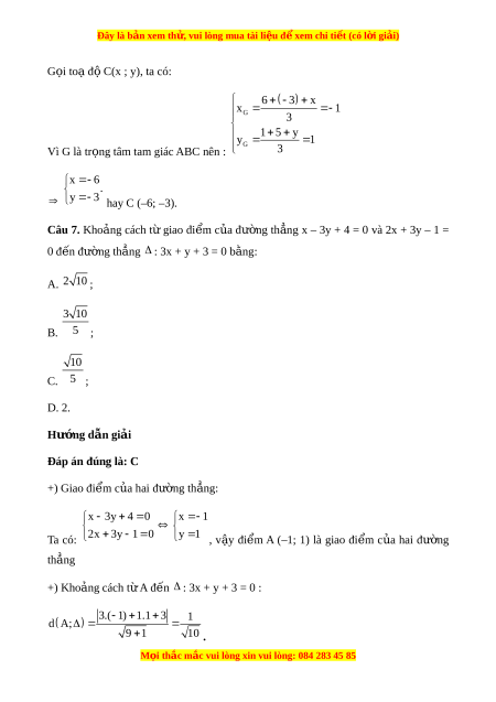 Đây là bản xem th , vu ử i lòng mua tài li u ệ đ xe ể m chi ti t ế (có l i ờ gi i ả ) G i ọ toạ đ C ộ (x ; y), ta có: 6 3 x x 1 G 3 1 5 y y 1 G Vì G là tr ng t ọ