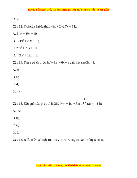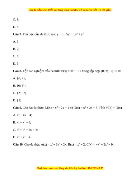 Đây là bản xem th , vu ử i lòng mua tài li u ệ đ xe ể m chi ti t (c ế ó l i ờ gi i ả ) C. 3; D. 4. Câu 7. Tìm b c ậ c a đa t ủ h c