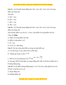 Câu 15. Cho M thu c đo n th ng AB, ộ ạ ẳ AM = 4cm, AB = 6cm. G i O là trung ọ