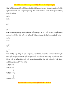 ợ quả bóng màu vàng” có xác su t ấ b ng ằ 2 . H i ỏ trong thùng ch a ứ bao nhiêu quả bóng màu vàng? A. 10; B. 20; C. 5; D. 15. Câu 9. M t ộ chuy n