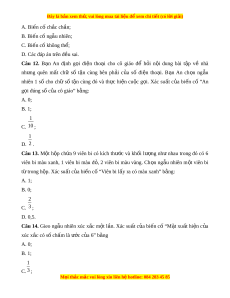 ế cố “Chúng ta có thể quay v quá kh ề ” l ứ à A. Bi n ế cố ch c ắ ch n; ắ B. Bi n c ế ố ng u nhi ẫ ên; C. Bi n c ế ố không th ; ể D. Các đáp án trên đ u s ề ai. Câu 3. Bi n