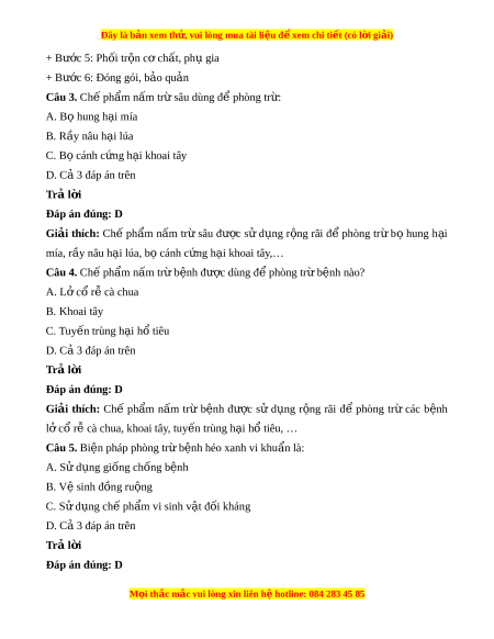 Câu 4. Chế phẩm n m ấ tr b ừ nh đ ệ ư c dùng đ ợ phòng t ể r b ừ nh nào? ệ A. L c ở ổ r cà chua ễ B. Khoai tây C. Tuy n t ế rùng h i ạ h t ổ iêu D. C 3 đáp án ả trên Trả l i ờ Đáp án đúng: D