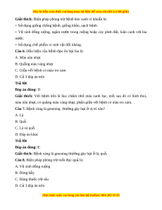 Câu 7. Bệnh vàng lá greening thư ng gây h ờ i ạ v ở t ị rí nào? A. Lá B. Quả C. Là và quả D. Đáp án khác Trả l i ờ Đáp án đúng: C