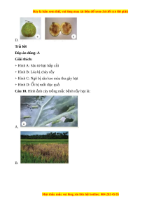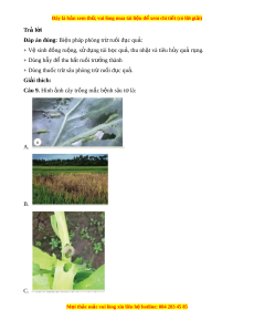 Đáp án đúng: Biện pháp phòng tr r ừ u i ồ đ c ụ qu : ả + V s ệ inh đồng ru ng, ộ s d ử ng t ụ úi b c ọ qu , t ả hu nh t ặ và tiêu h y qu ủ r ả ng. ụ + Dùng b y đ ẫ t ể hu b t ắ ru i ồ trư ng ở thành + Dùng thu c t ố r s ừ âu phòng tr r ừ u i ồ đ c ụ qu . ả Giải thích: Câu 9. Hình nh ả cây trồng m c ắ b nh s ệ âu tơ là: A. B. C. M i