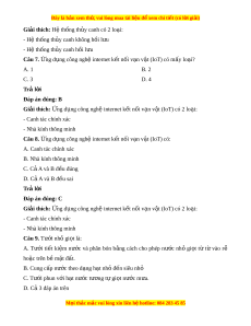 Câu 7. Ứng d ng công ụ nghệ internet k t ế n i ố v n v ạ t ậ (IoT) có m y l ấ o i ạ ? A. 1 B. 2 C. 3 D. 4 Trả l i ờ Đáp án đúng: B