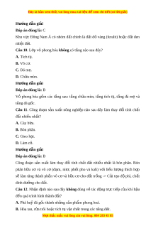không có tầng nào sau đây? A. Tích t . ụ B. Vô c . ơ C. Đá m . ẹ D. Chứa mùn. Hư ng d ớ ẫn gi i ả Đáp án đúng là: B Vỏ phong hóa g m ồ các t ng ầ sau: t ng ầ ch a ứ mùn, t ng ầ tích t , ụ t ng ầ đá m ẹ và tầng đá gốc. Câu 11. Công đo n ạ s n ả xu t ấ nông nghi p
