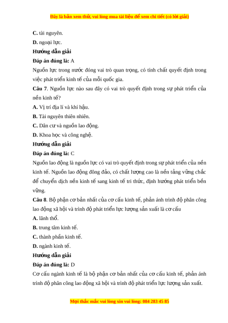 Đây là bản xem th , vu ử i lòng mua tài li u ệ đ xe ể m chi ti t ế (có l i ờ gi i ả ) C. tài nguyên. D. ngo i ạ l c. ự Hư ng ớ d n gi ẫ i ả Đáp án đúng là: A Nguồn l c ự trong nư c