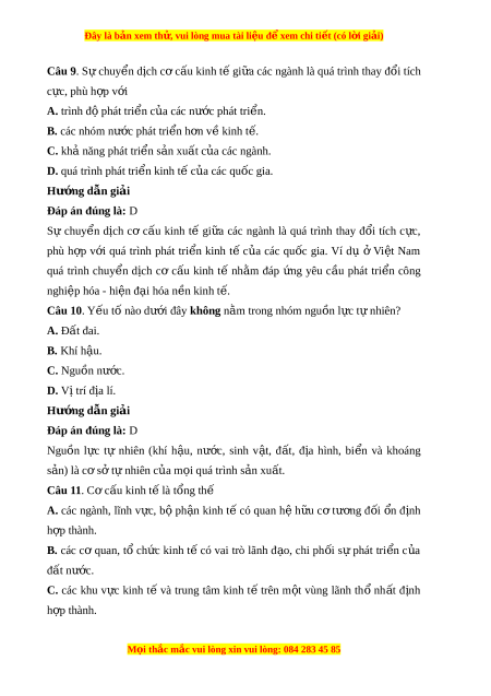 Đây là bản xem th , vu ử i lòng mua tài li u ệ đ xe ể m chi ti t (c ế ó l i ờ gi i ả ) Câu 9. S chuy ự n ể d ch ị c c ơ u ki ấ nh t gi ế a các ữ