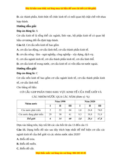 Đây là bản xem th , vu ử i lòng mua tài li u ệ đ xe ể m chi ti t (c ế ó l i ờ gi i ả ) Hư ng d ớ ẫn gi i ả Đáp án đúng là: B Cơ cấu ngành kinh tế c a ủ các nư c ớ phát tri n ể có đ c ặ đi m ể là tỉ tr ng ọ ngành