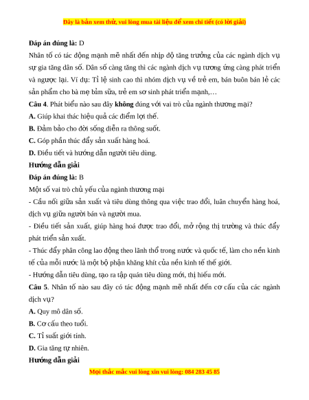 Đây là bản xem th , vu ử i lòng mua tài li u ệ đ xe ể m chi ti t (c ế ó l i ờ gi i ả ) Đáp án đúng là: D Nhân tố có tác đ ng ộ m nh ạ mẽ nh t ấ đ n ế nh p ị độ tăng trư ng ở c a ủ các ngành d ch ị vụ sự gia tăng dân s .