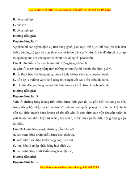Đây là bản xem th , vu ử i lòng mua tài li u ệ đ xe ể m chi ti t (c ế ó l i ờ gi i ả ) B. nông nghiệp. C. dân c . ư D. công nghiệp. Hư ng d ớ ẫn gi i ả Đáp án đúng là: C S phân b ự ố các ngành d ch v ị t ụ iêu dùng (y t , ế giáo d c, t ụ h d ể c, t ụ h t ể hao, du l ch, bán ị buôn, bán l ,…) ẻ g n ắ bó m t ậ thi t ế v i ớ phân b ố dân c . ư Ví d : ụ Ở các đô th ịdân c ư t p ậ