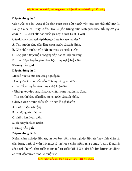 Đây là bản xem th , vu ử i lòng mua tài li u ệ đ xe ể m chi ti t (c ế ó l i ờ gi i ả ) Đáp án đúng là: A Các nư c ớ có s n ả lư ng ợ đi n ệ bình quân theo đ u ầ ngư i ờ vào lo i ạ cao nh t ấ th ế gi i ớ là