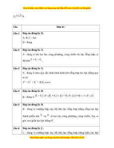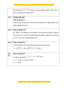 Đáp án đúng là: A. A - đúng vì theo quy t c ắ hình bình hành khi t ng ổ h p ợ hai l c ự đ ng ồ quy ta có: 2 2 2 F = F + F + 2FF .cos 1 2 1 2 . Câu 4