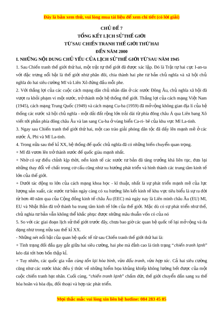 ệ đ xe ể m chi ti t ế (có l i ờ gi i ả ) CHỦ Đ 7 Ề TỔNG K T Ế L C Ị H S Ử TH G Ế I I Ớ TỪ SAU CHI N Ế TRANH TH G Ế I I Ớ TH H Ứ AI Đ N Ế NĂM 2000
