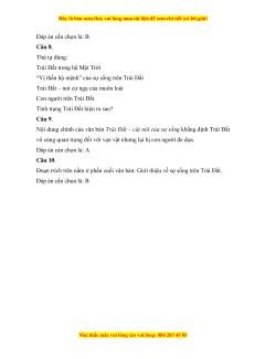 Câu 2. Ai là tác giả văn bản Trái Đất – cái nôi của sự sống? A. Thái Bá Dũng B. Hà My C. Văn Quang, Văn Tuyên D. Hồ Thanh Trang