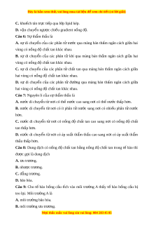 Đây là bản xem th , vu ử i lòng mua tài li u ệ đ xe ể m chi ti t (c ế ó l i ờ gi i ả ) C. khu ch ế tán tr c ự ti p ế qua l p l ơ ipid kep. D. v n ậ chuy n ng ê ư c ợ chi u gr ê adient n ng đ ồ . ô Câu 6: S t ự hẩm th u l ấ à A. sự di chuy n ê c a u các phân t ư nư c ơ qua màng bán th m ấ ngăn cách gi a ữ hai vùng co nồng đ ch ô ất tan khác nhau. B. sự di chuy n ê c a