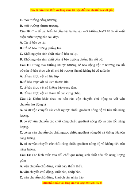 Đây là bản xem th , vu ử i lòng mua tài li u ệ đ xe ể m chi ti t ế (có l i ờ gi i ả ) C. môi trư ng ờ đ ng t ă rư ng. ơ D. môi trư ng ờ như c t ợ rư ng. ơ Câu 10: Cho t ế bào bi u ê bi c a
