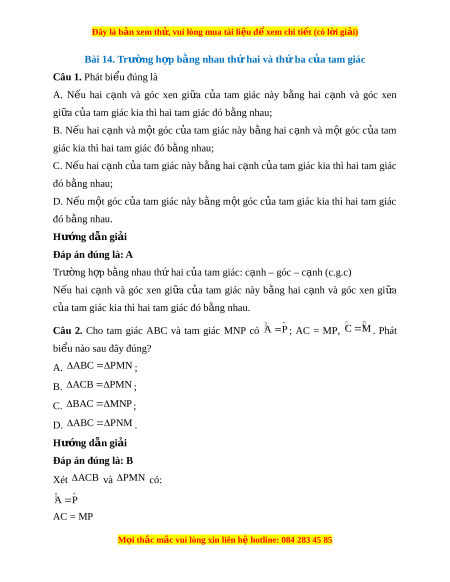 Đây là bản xem th , vu ử i lòng mua tài li u ệ đ xe ể m chi ti t (c ế ó l i ờ gi i ả ) Bài 14. Trư ng h ờ p b ợ ng n ằ hau th hai ứ và th ba c ứ a t ủ am giác