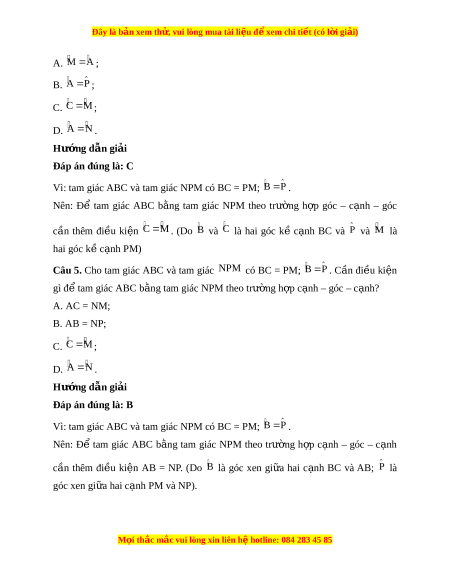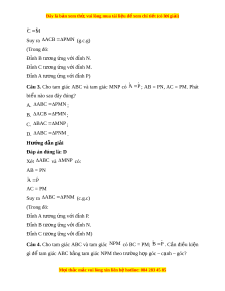 Đây là bản xem th , vu ử i lòng mua tài li u ệ đ xe ể m chi ti t (c ế ó l i ờ gi i ả ) C M Suy ra A CB P MN (g.c.g) (Trong đó: Đỉnh B tư ng ơ ng v ứ i ớ đ nh N ỉ . Đỉnh C tư ng ơ ng v ứ i ớ đ nh M ỉ . Đỉnh A tư ng ơ ng v ứ i ớ đ nh P) ỉ