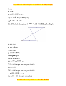 ủ tam giác kia thì hai tam giác đó b ng ằ nhau. Hư ng d ớ ẫn gi i ả Đáp án đúng là: A Trư ng h ờ p b ợ ng ằ nhau th hai ứ c a t