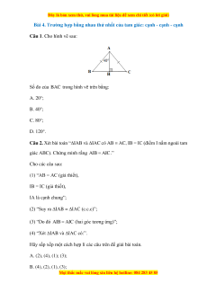 Câu 2. Xét bài toán “IAB và IAC có AB = AC, IB = IC (điểm I nằm ngoài tam