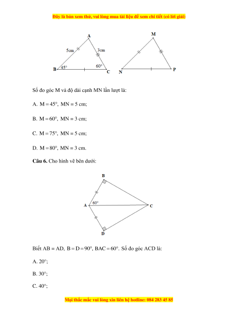 Đây là bản xem thử, vui lòng mua tài liệu để xem chi tiết (có lời giải)