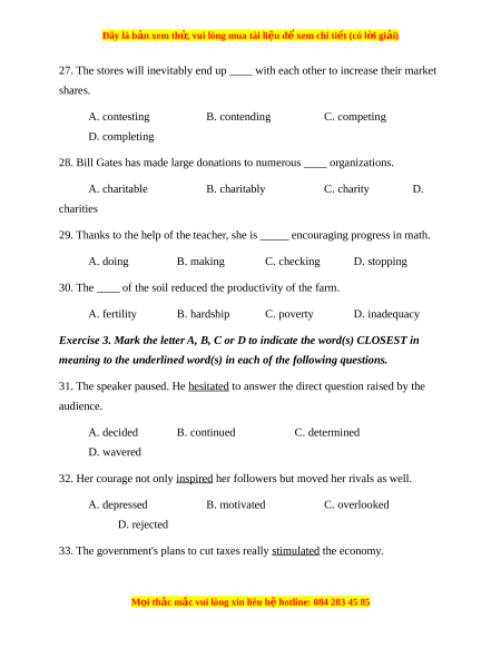 Exercise 3. Mark the letter A, B, C or D to indicate the word(s) CLOSEST in
