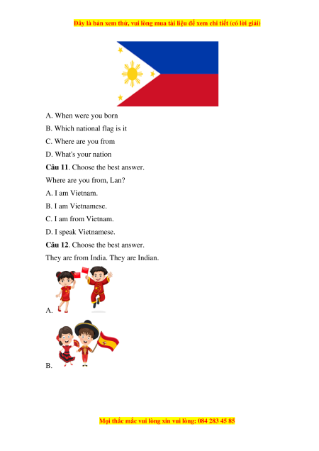 B: Tôi đến từ Philippines. Tôi là Flippino.