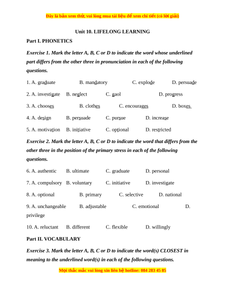 Unit 10. LIFELONG LEARNING Part I. PHONETICS